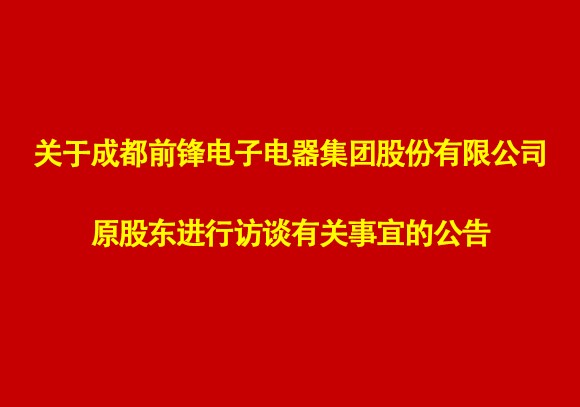 關(guān)于成都前鋒電子電器集團(tuán)股份有限公司原股東進(jìn)行訪談?dòng)嘘P(guān)事宜的公告 為滿足成都前鋒電子電器集團(tuán)股份有限公司現(xiàn)代化發(fā)展的要求,建立權(quán)