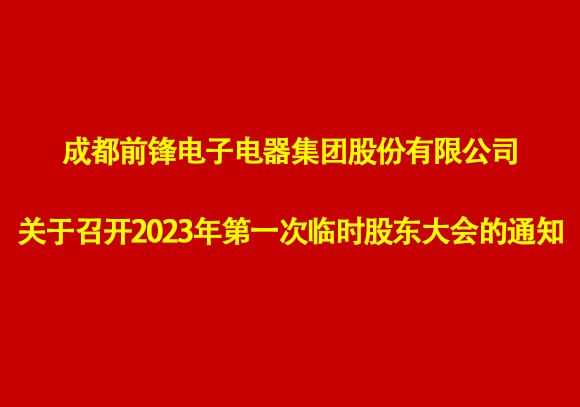 成都前鋒電子電器集團(tuán)股份有限公司2023年第一次臨時(shí)股東大會(huì)決議公告 成都前鋒電子電器集團(tuán)股份有限公司2023年第一次臨時(shí)股東大會(huì)通知