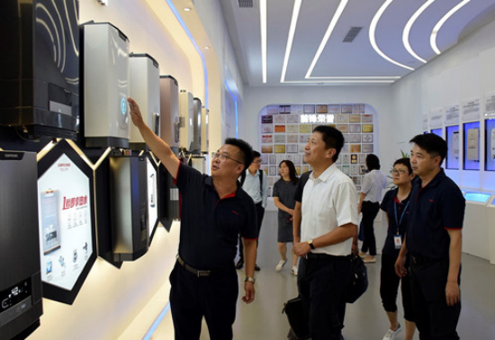中國五金制品協(xié)會專職副理事長柳潤峰、中國五金制品協(xié)會副秘書長蘇安建、中怡康時代高級研究經(jīng)理高敏、騰訊家居以及考察團媒體成員參觀了前鋒產(chǎn)品展廳、產(chǎn)品實驗室、生產(chǎn)車間及檢測中心,探秘了前鋒60多年歷史的燃?xì)饩咂放频馁|(zhì)造之道。